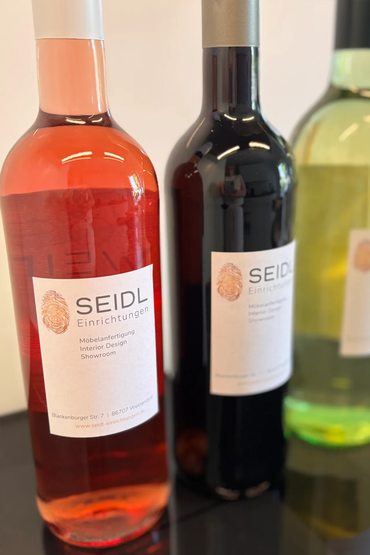 Der Marken-Relaunch umfasste zudem die komplette Geschäftsausstattung, zweiseitiges Briefpapier, stilvolle Präsentationsmappen und individuelle Weinetiketten als exklusive Give-aways. Auch Schilder, ein markanter Pylon, die KFZ-Beschriftungen sowie eine neue, benutzerfreundliche Webseite wurden gestaltet, um das Unternehmen optimal zu präsentieren.